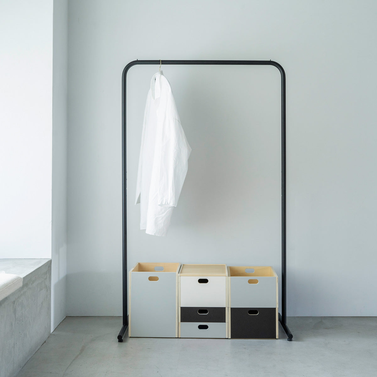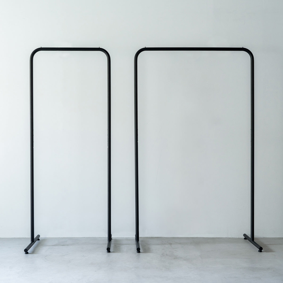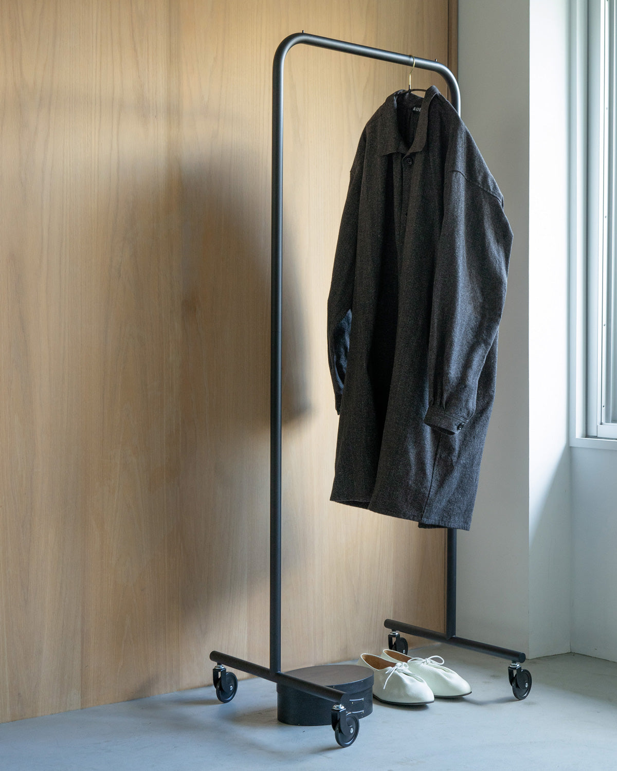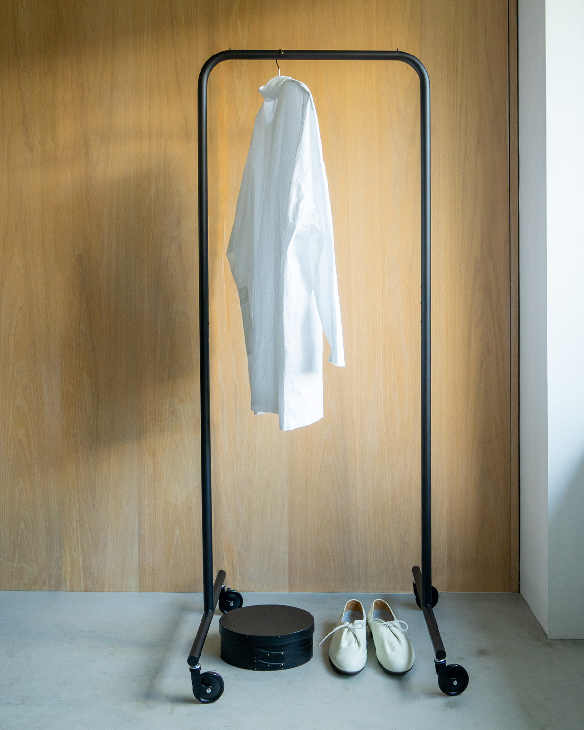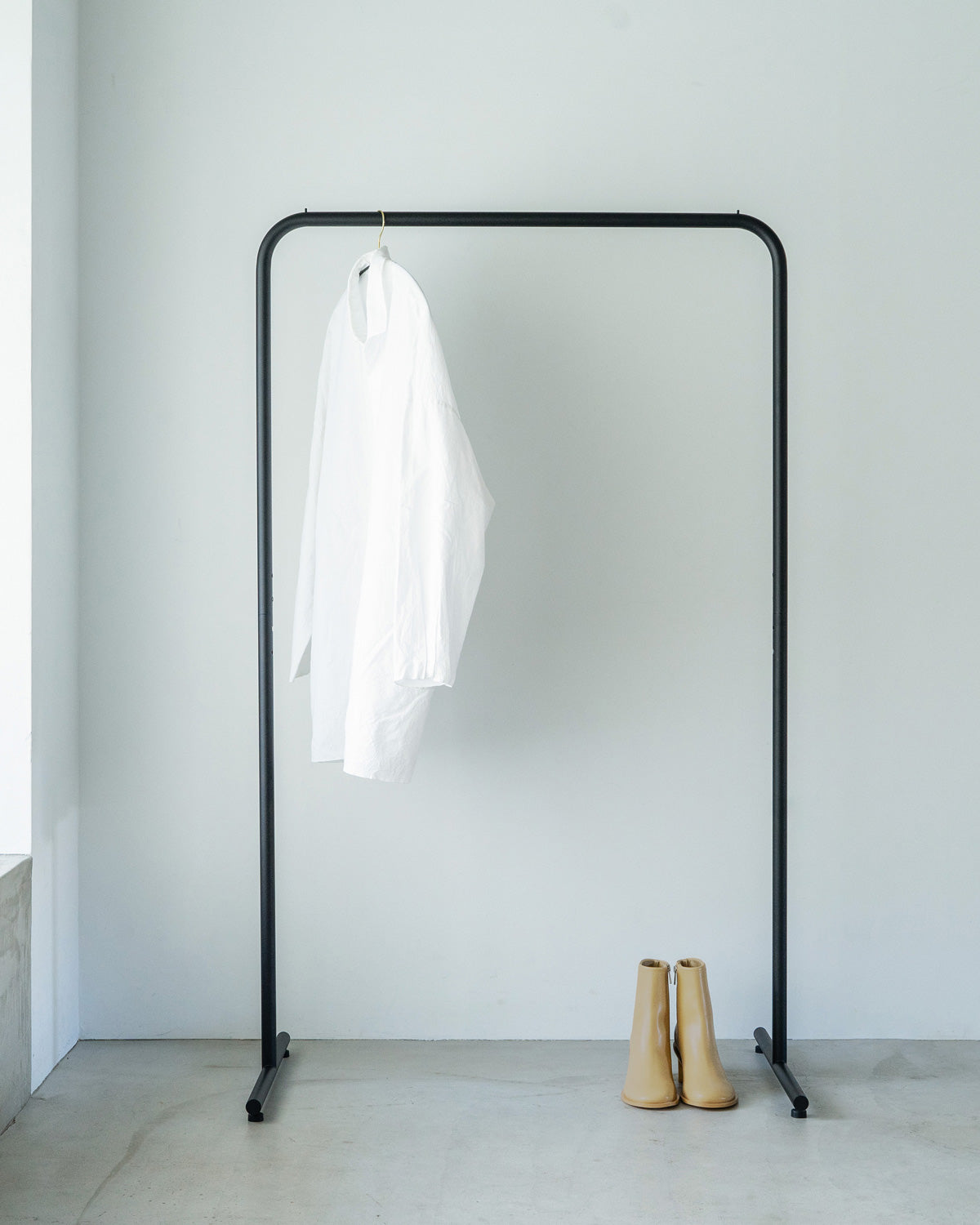 HANGER RACK, with its matte black steel piping, stands neatly and beautifully and blends naturally into your space.