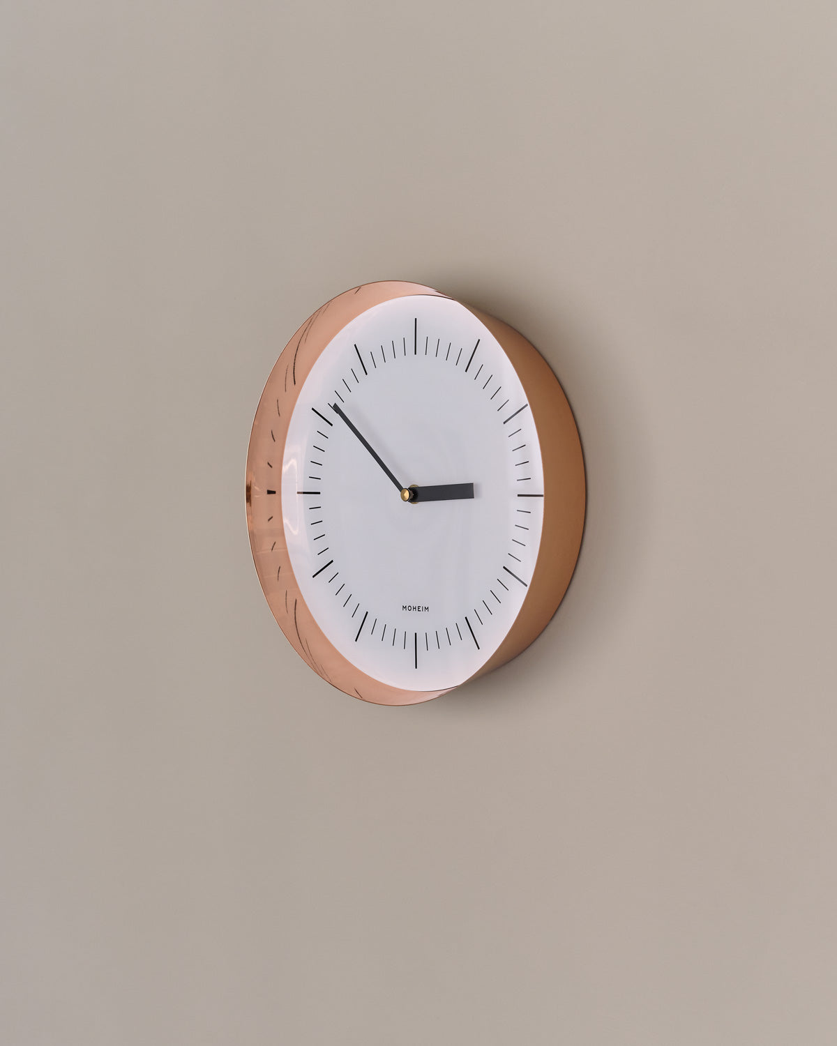 By the uncertain balance exuded by precise design and volume adjustments, HORN constantly changes the impressions. How it looks depends on where we look at it from, but it is surely there when needed as a perfect wall-clock. This is why we say it is just like a mirror.