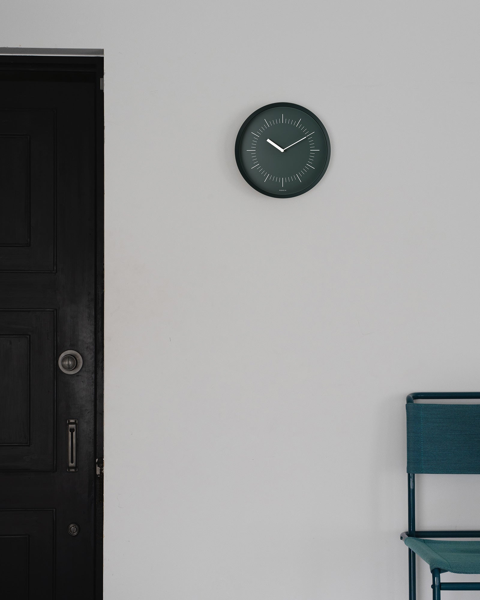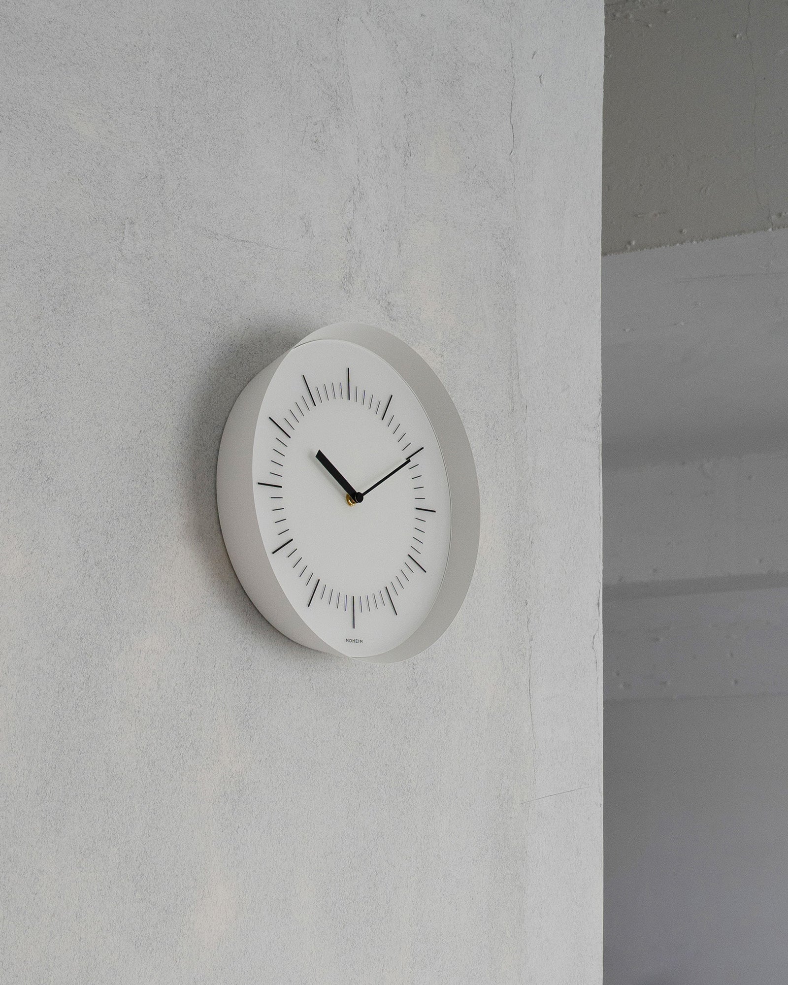 While it is a wall clock composed of only the minimum necessary parts, a sense of volume as a timepiece is achieved through the “thinness of the frame,” the “expansive angle,” and the “depth of the profile,” creating a balanced overall design.