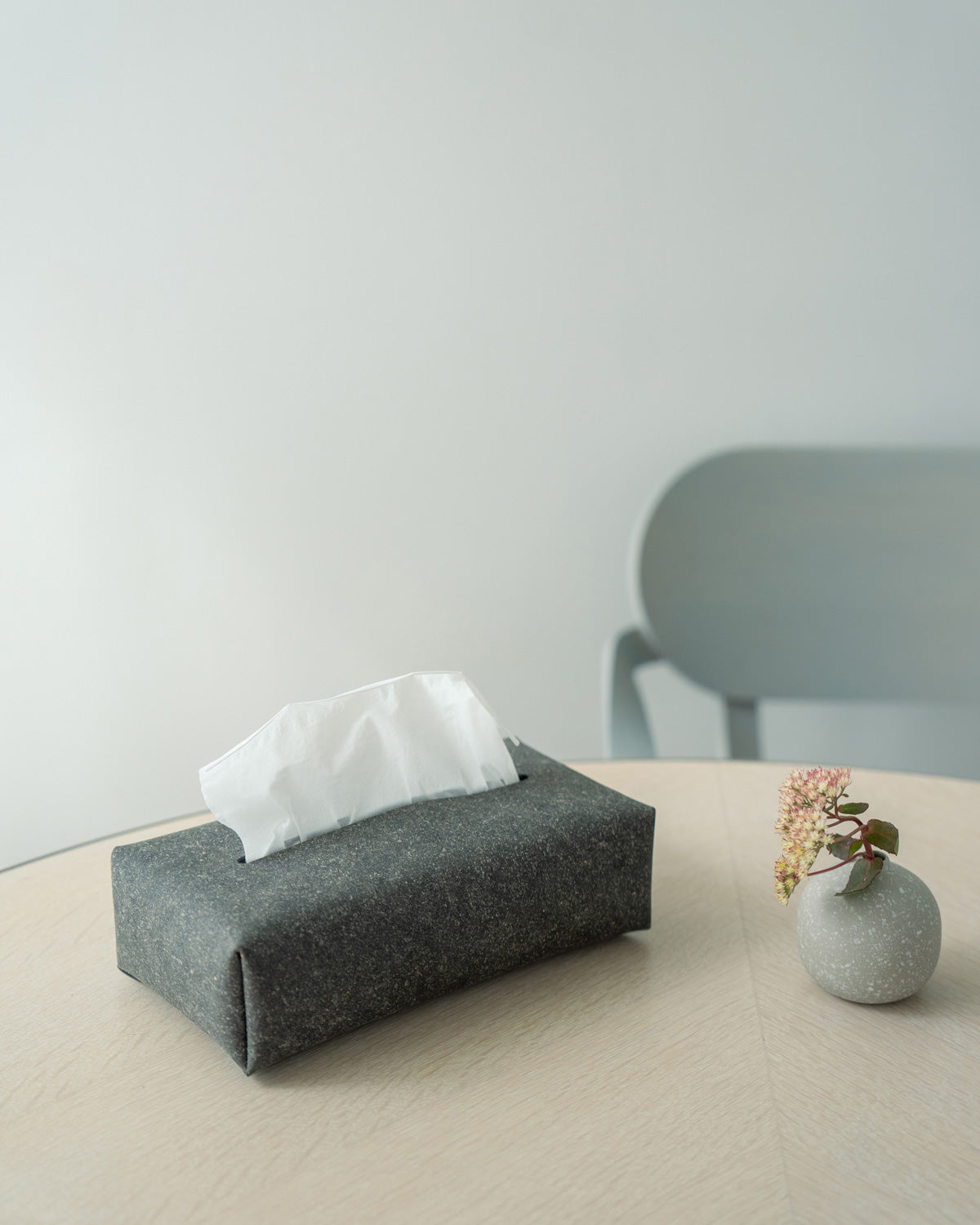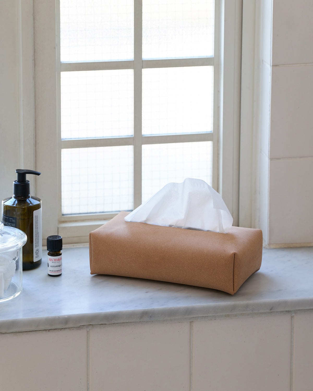 The natural texture and expression of the leather further accentuates the beauty of the unadorned TISSUE COVER.