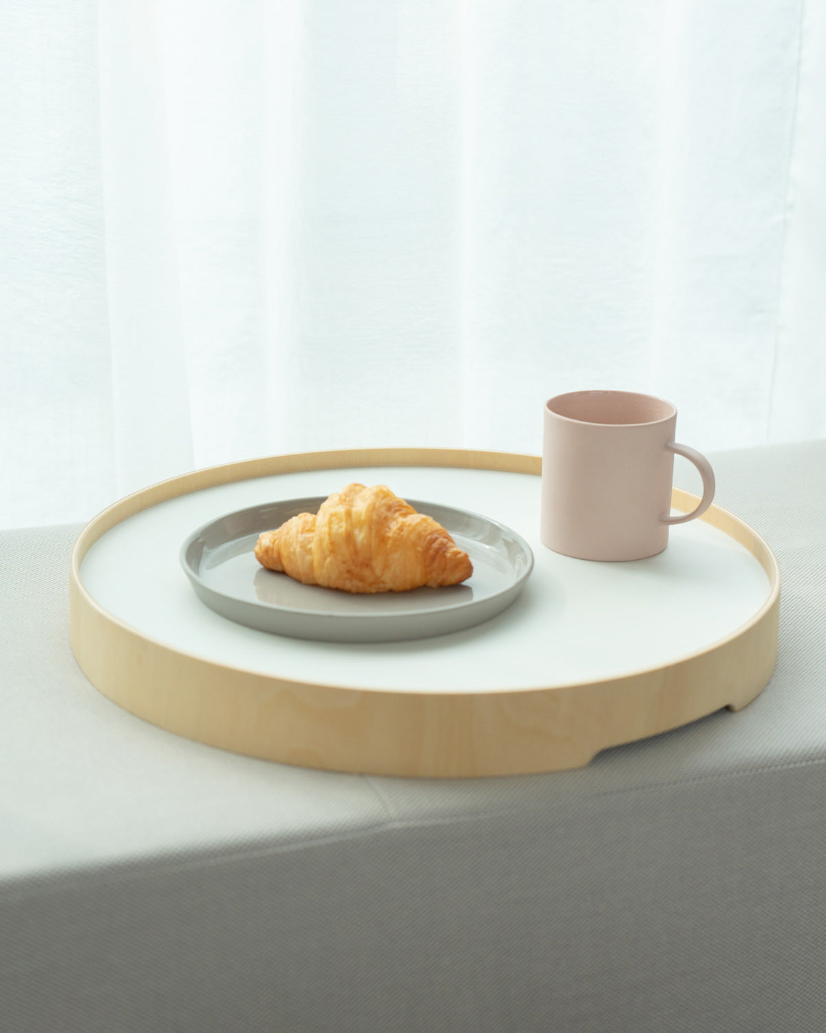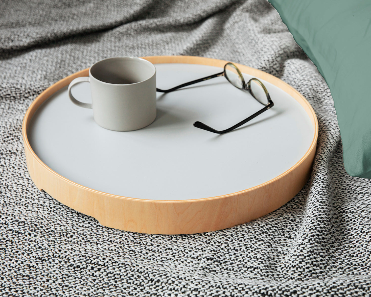 The tray is made by craftsmen from the Kawada area, which is famous for lacquerware of traditional crafts. The height of the frame is a bit higher than normal, which allows its use on a bed or a sofa, and the tray can be used as a small table anytime, anywhere.